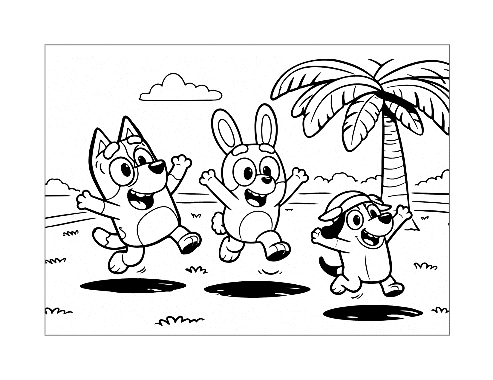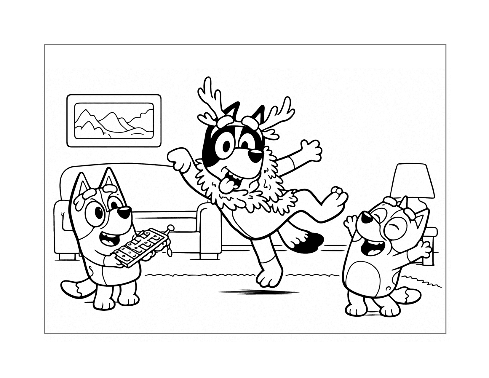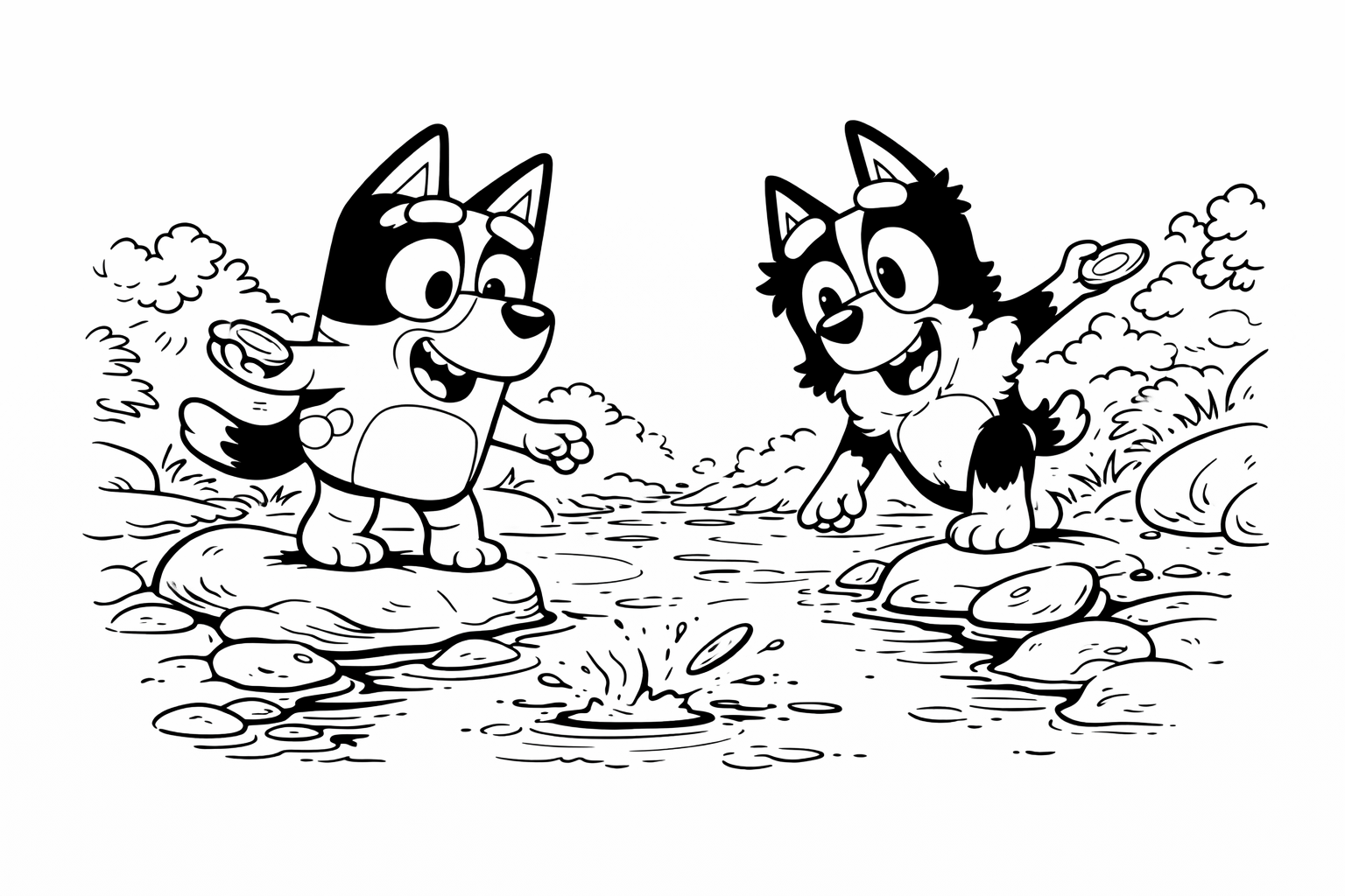 Bluey and Bingo Scenes Coloring Pages